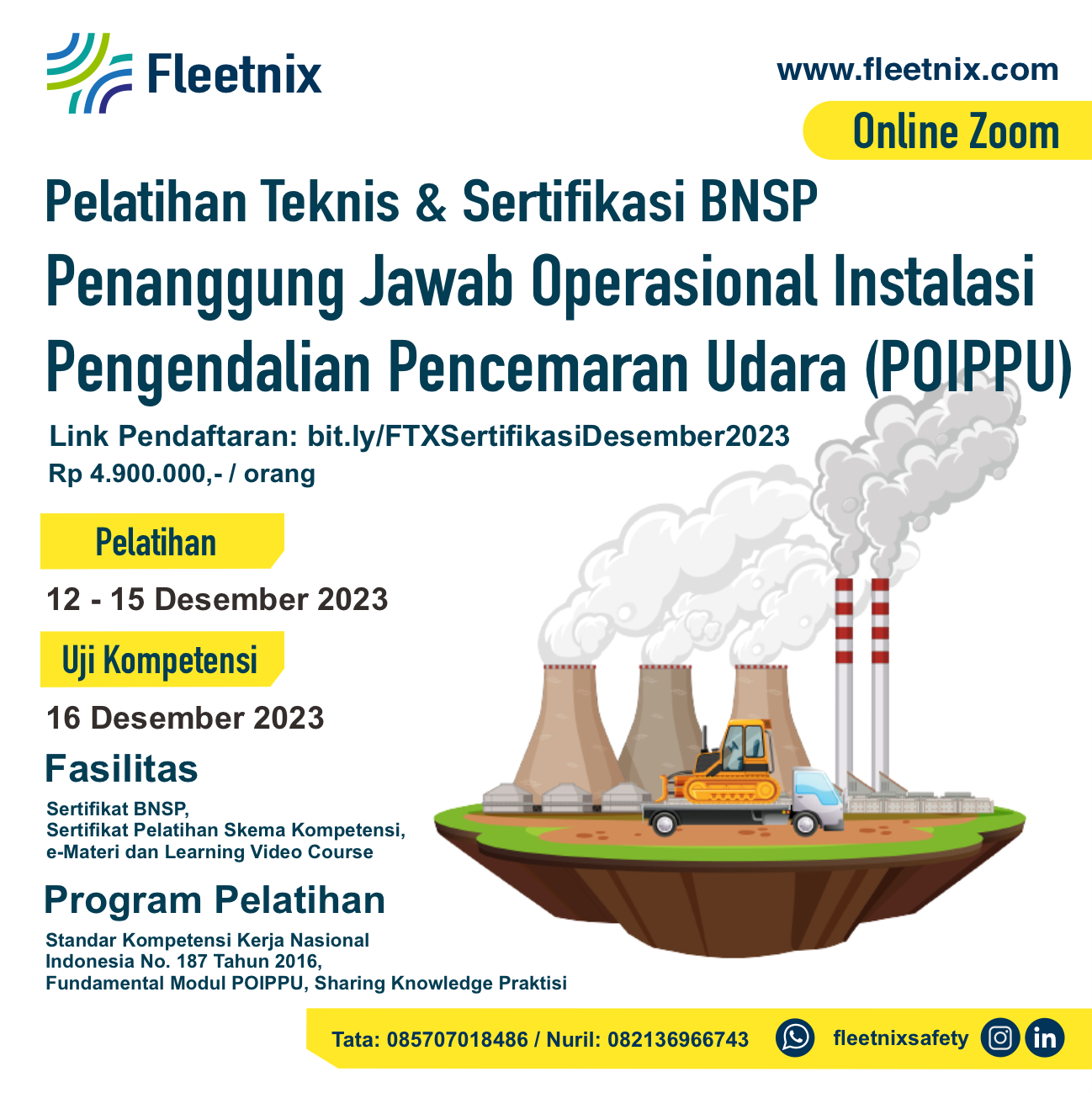 Dalam operasional bisnis, peran Petugas Pengendalian Pencemaran bukan hanya sekedar persyaratan peraturan namun merupakan komponen penting dari tanggung jawab lingkungan perusahaan dan pembangunan berkelanjutan. Dunia usaha saat ini beroperasi dalam lanskap peraturan yang semakin ketat, dimana kegagalan dalam mematuhi undang-undang dan standar lingkungan hidup dapat mengakibatkan hukuman yang berat, kerusakan reputasi, dan dalam kasus yang ekstrim akan dilakukan pencabutan izin usaha. Penanggung Jawab Operasional Instalasi Pengendalian Pencemaran Udara (POIPPU) berfungsi sebagai ujung tombak kepatuhan lingkungan, memastikan bahwa bisnis tidak hanya memenuhi kewajiban hukum namun juga menerapkan praktik terbaik dalam pengelolaan lingkungan udara. Dengan mengidentifikasi potensi risiko lingkungan dan menerapkan langkah-langkah mitigasi, Penanggung Jawab Operasional Instalasi Pengendalian Pencemaran Udara (POIPPU) berkontribusi terhadap keberlanjutan keseluruhan dan kesuksesan bisnis jangka panjang.