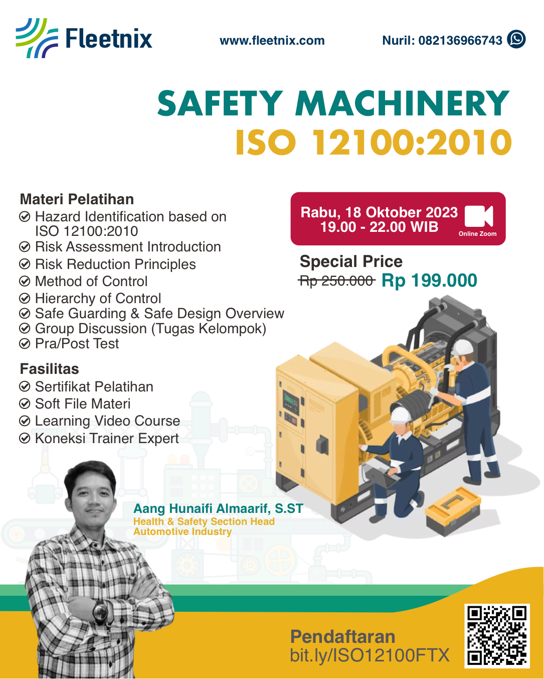 Dalam pelatihan ini, persyaratan yang ditentukan dari standar dan pedoman ISO 12100:2010, bekali diri Anda dengan pengetahuan penting dan keterampilan praktis untuk memastikan kepatuhan terhadap standar Keselamatan Mesin.