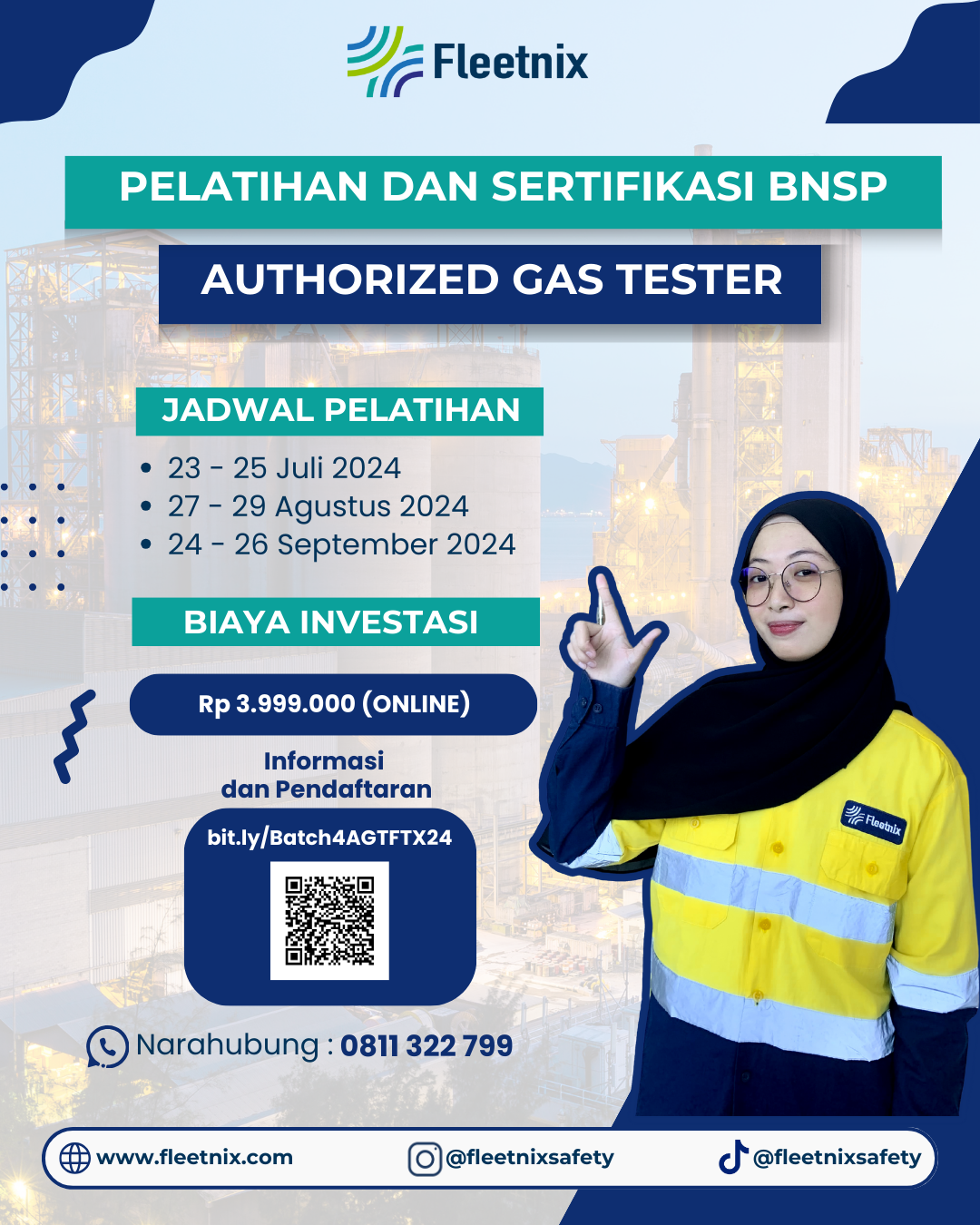 Insiden yang melibatkan gas beracun merupakan salah satu risiko keselamatan utama bagi industri, terutama dengan aktivitas berisiko tinggi seperti bekerja di ruang terbatas atau pekerjaan panas (Hot Work). Untuk memastikan bahwa atmosfir aman untuk pekerjaan panas (Hot Work) atau bekerja di ruang terbatas, prosedur keselamatan mengharuskan terdapat peran Authorized Gas Tester (AGT) yang ditunjuk oleh pemberi kerja untuk melakukan pengujian awal dan pemantauan terus menerus terhadap atmosfir di lingkungan kerja. Agar seorang Authorized Gas Tester (AGT) dinayatakan kompeten untuk melakukan ini, dia harus mengikuti pelatihan sertifikasi BNSP - Authorized Gas Tester.